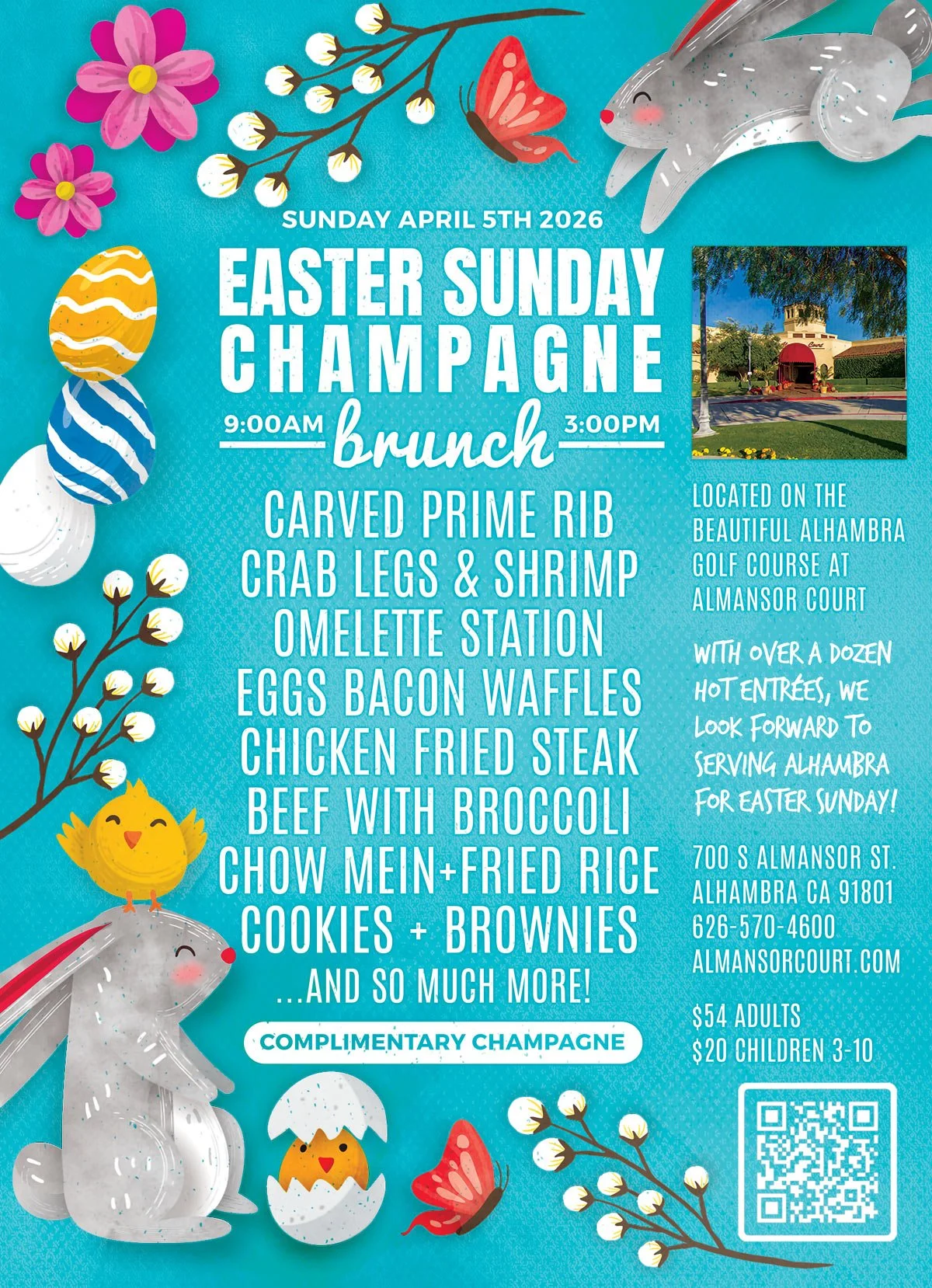 Almansor Court is proud to be open serving you, your friends & family with a beautiful Easter buffet experience featuring all of the traditional Sunday Brunch dishes, plus a little extra! Our bright, cheerful facility and beautiful view of the gold course compliment the fresh, hot food displays that have something for everyone in the family!